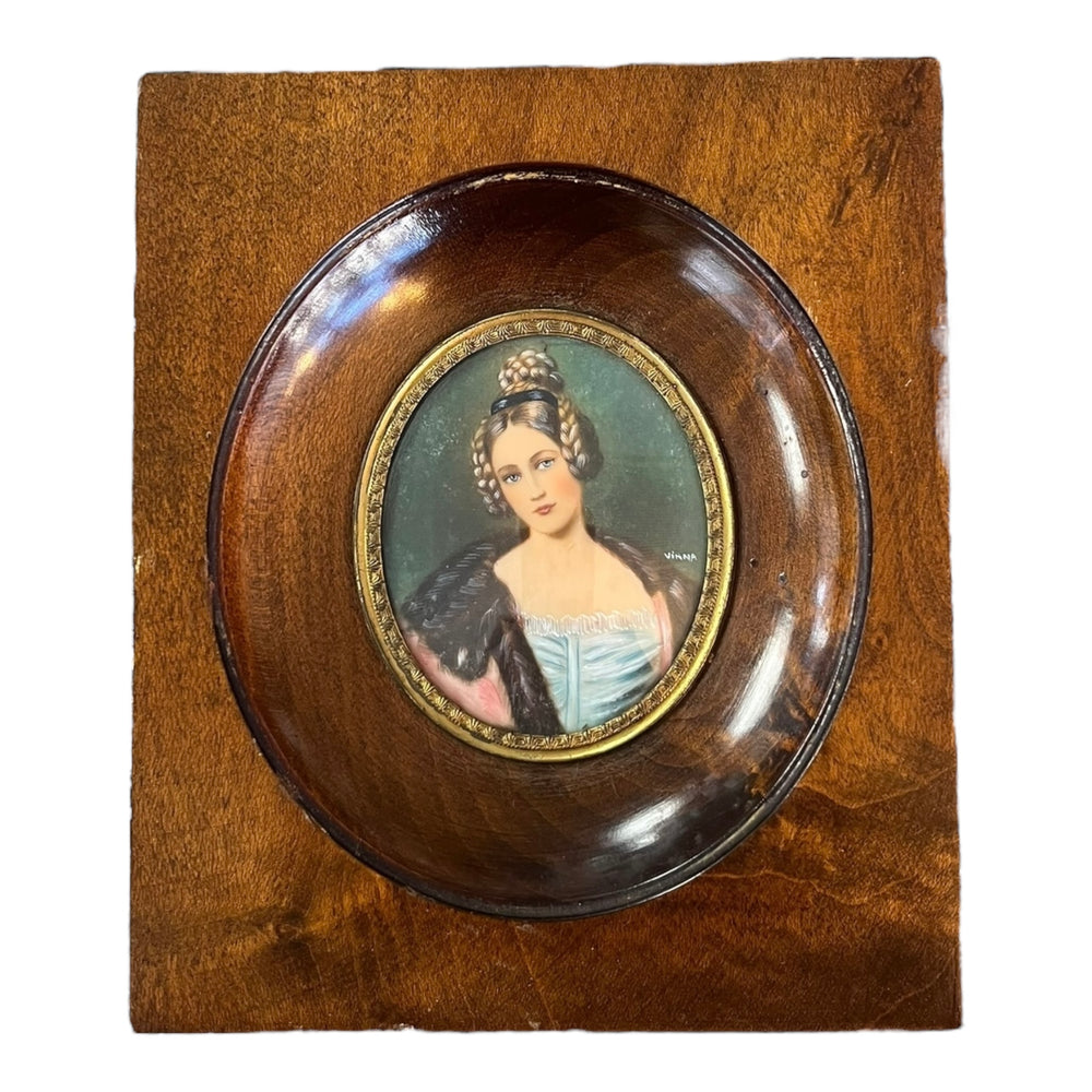 Картина на овале из слоновой кости размером примерно 6х5 см.