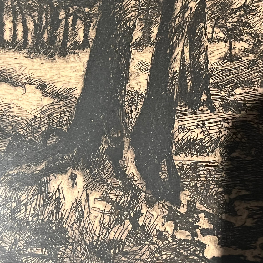 Вода -водная гравюра из вида на Вакбах -Баден Вюртемберг Форест Фриц Покран (1878-1945)