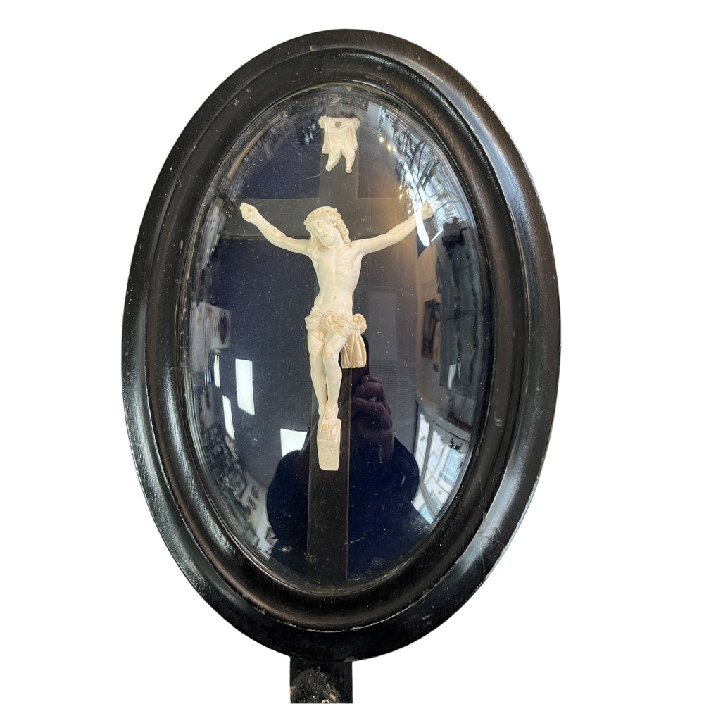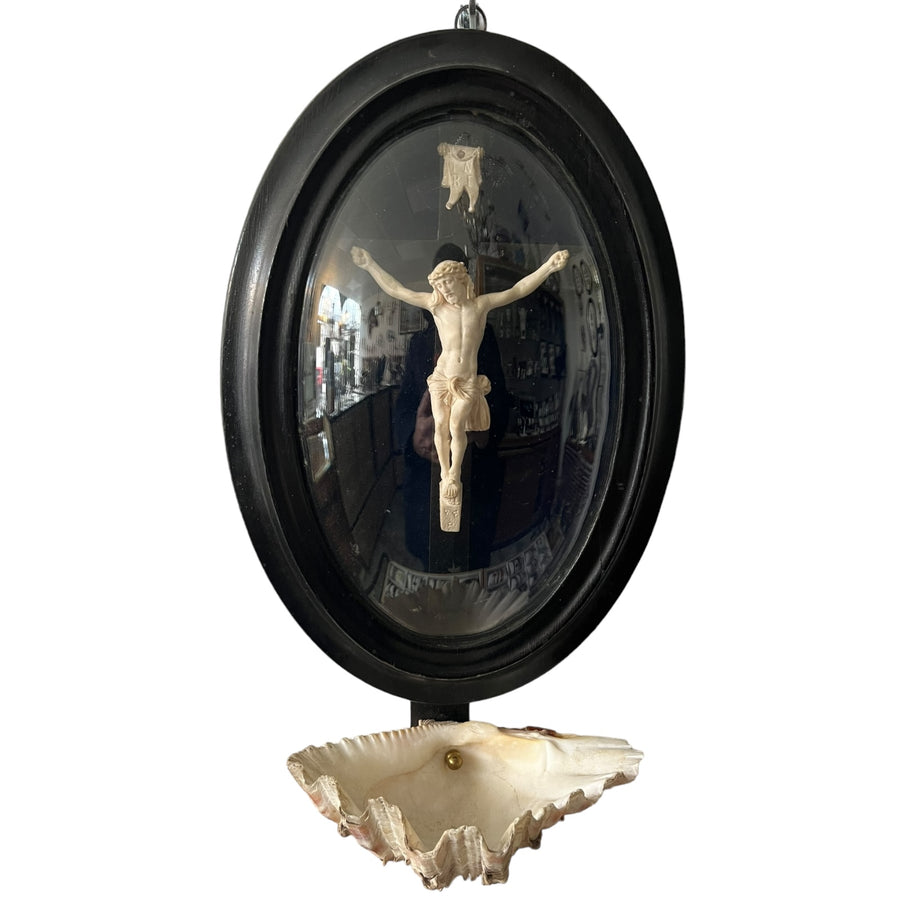 Французский бенитье с черненой деревянной рамой и изогнутым стеклом периода Наполеона III.
