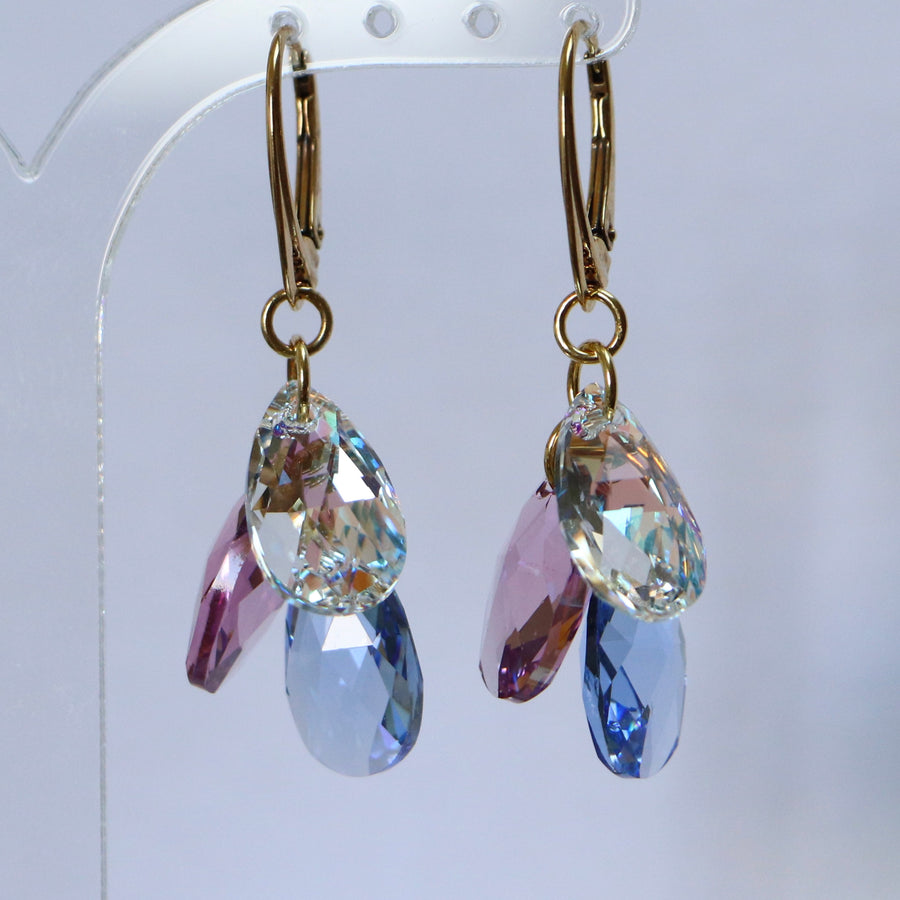 带有施华洛世奇晶体的耳环,金银,浅蓝色/紫色,花朵