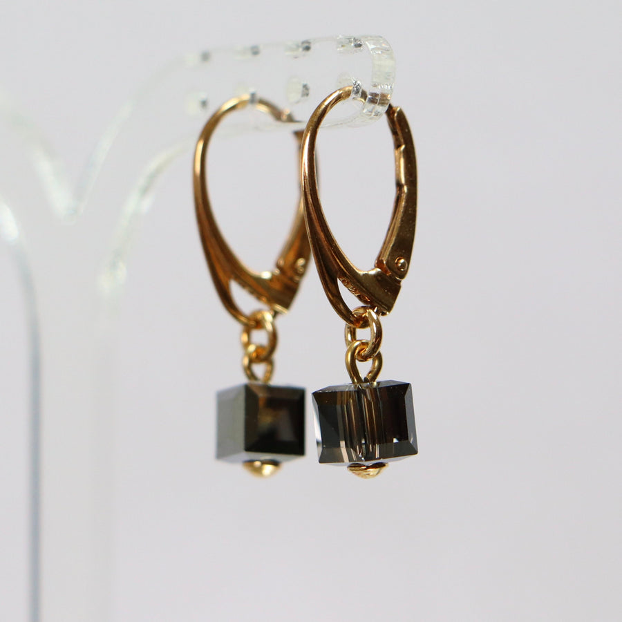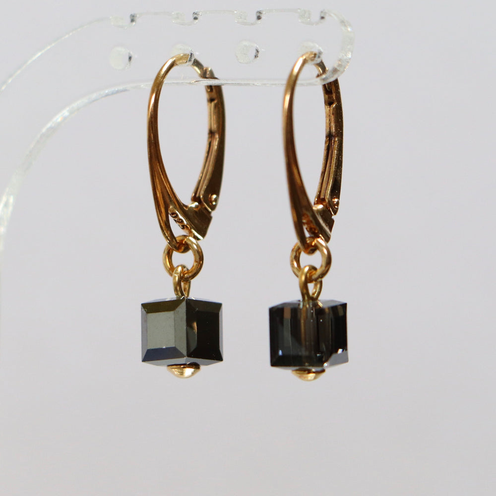 带有施华洛世奇晶体的耳环,银灰色,金银,十字路口