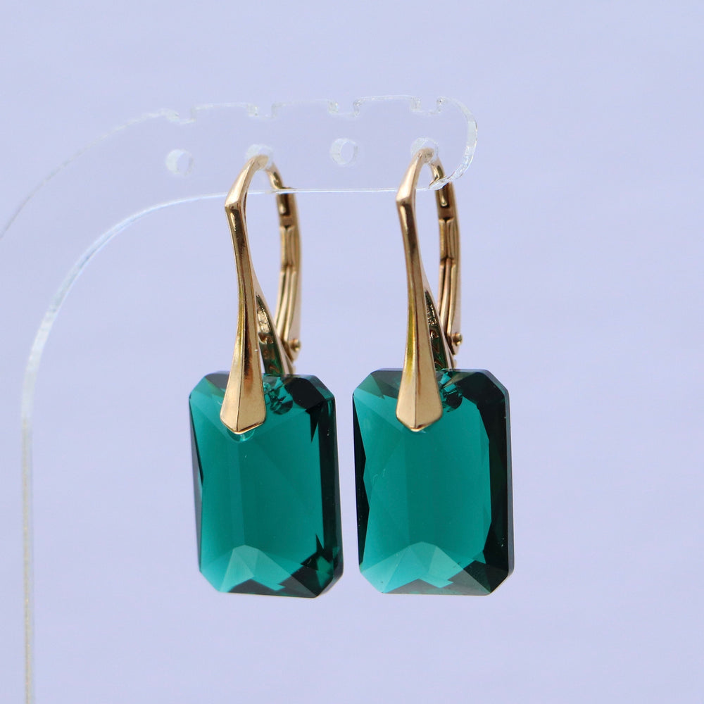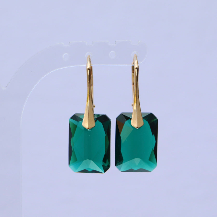 带有施华洛世奇水晶的耳环,翡翠绿,金银,诺米