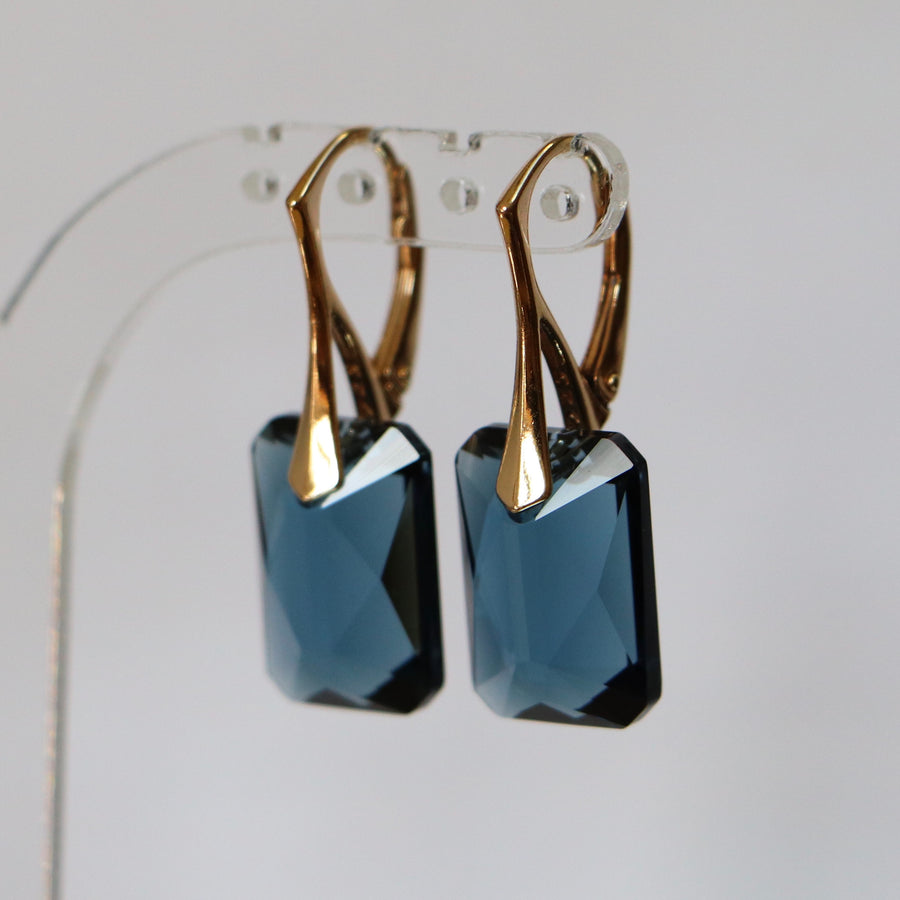 带有施华洛世奇水晶的耳环,蒙大拿州蓝色,金银,诺米