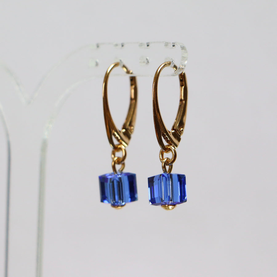 带有施华洛世奇水晶的耳环,蓝色,金银,十字路口