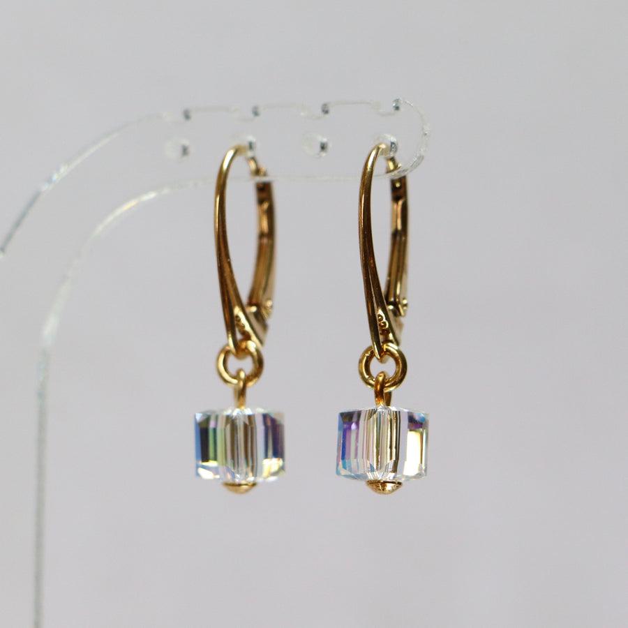 带有施华洛世奇水晶的耳环,ab晶,金银,十字路口