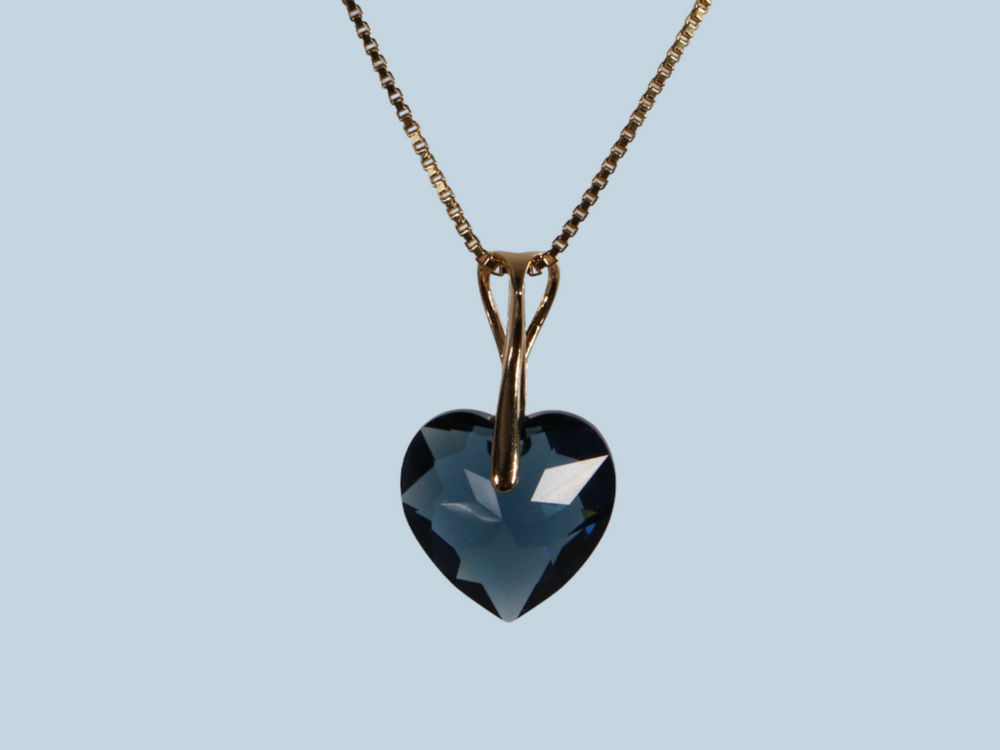 带有施华洛世奇的项链,蓝色蒙大拿州晶体,银,心脏